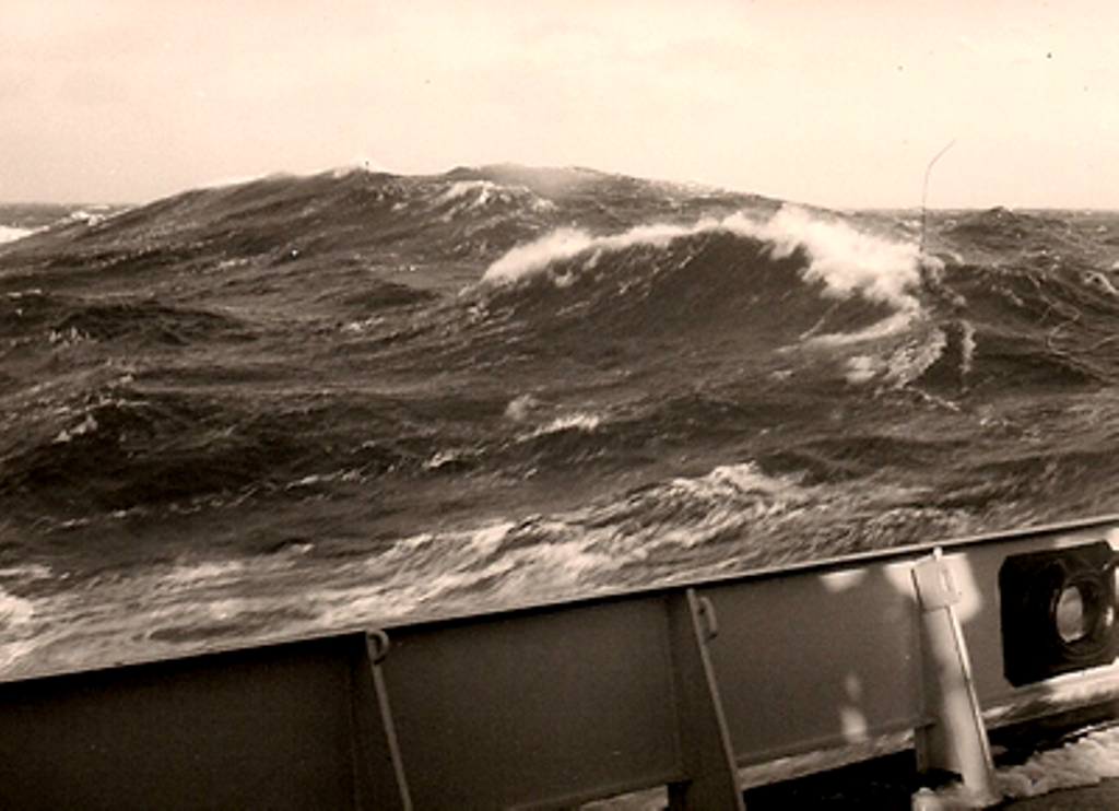 Wie die meisten Schiffe, blieb auch die „MARY“ nicht von schlechtem Wetter verschont. Während der Zeit, die Reinhard Metzger als E.-Assi und Elektriker auf der verbrachte erwischte es die „MARY“ auf einer Nordatlantik-Reise. Sie hat es gut überstanden.
